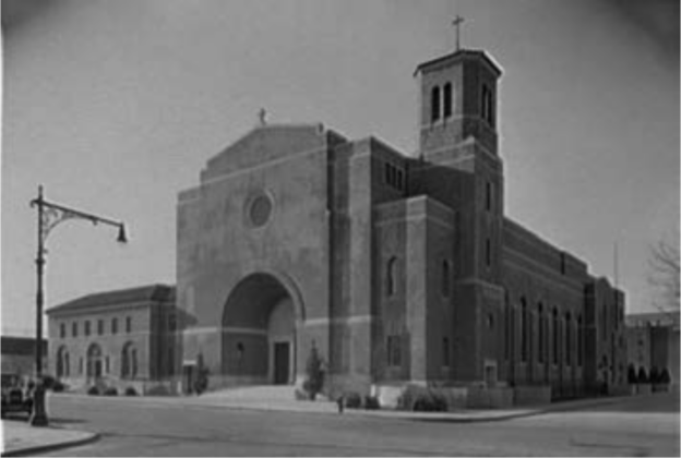 Over the next few years, St. Raymond’s grew significantly, and by 1850 it had at least nine new mission chapels in The Bronx under its tutelage. Their expansion continued, and in 1865 a large piece of land was added to build a Catholic Protectory. This institution was created to provide housing and education to orphaned Catholic children, also offering training in trades and domestic work. The Protectory remained in operation for over 70 years, with facilities designed in the Victorian Gothic style. In 1938, the property was sold to the Metropolitan Life Insurance Company for the construction of Parkchester. During the second half of the 1800s residential development continued in The Bronx, increasing the number of St. Raymond’s parishioners. A new cemetery was established, and plans began for a new church. Architect George H. Streeton was commissioned to design this Byzantine Revival structure, which was completed in 1898. A new building for the elementary school was completed in 1909, while construction of a new convent and rectory was halted until 1931 due to the First World War. The opening of Parkchester prompted St. Raymond’s to expand their educational programs further, opening a larger elementary school in 1951 and establishing new high schools for girls and boys in 1960 and 1962, respectively. Both the church and its schools have evolved over the years to reflect the neighborhood’s demographic and cultural changes, remaining a community staple. Photos: (top) Exterior of St. Raymond’s, courtesy of Bronx Catholic (bottom) Exterior of St. Raymond’s Academy for Girls, by Hugo L. González.